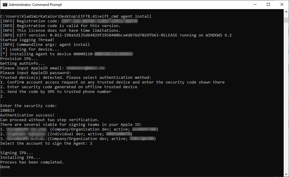 Sideloading the extraction agent requires the use of an Apple ID. Both regular and developer Apple IDs can be used.