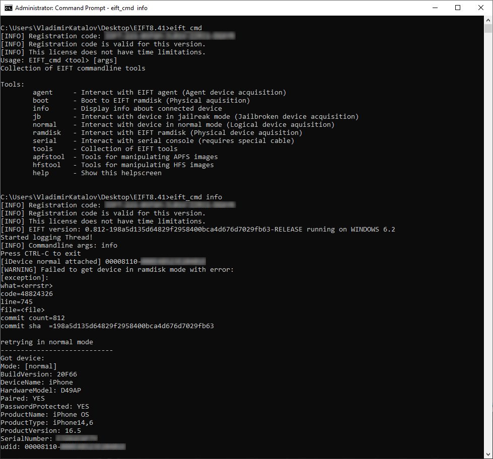 Full physical acquisition is available for the same range of devices. For all supported models, the Toolkit can extract the bit-precise image of the user partition. For these devices, the Toolkit can extract an exact copy of the device's disk and the keys needed to decrypt it. You can then use the FSTOOL utility (supplied with EIFT and available as a free stand-alone tool for Windows, Linux, and macOS) to mount the image for manual research or for comprehensive analysis with other forensic tools