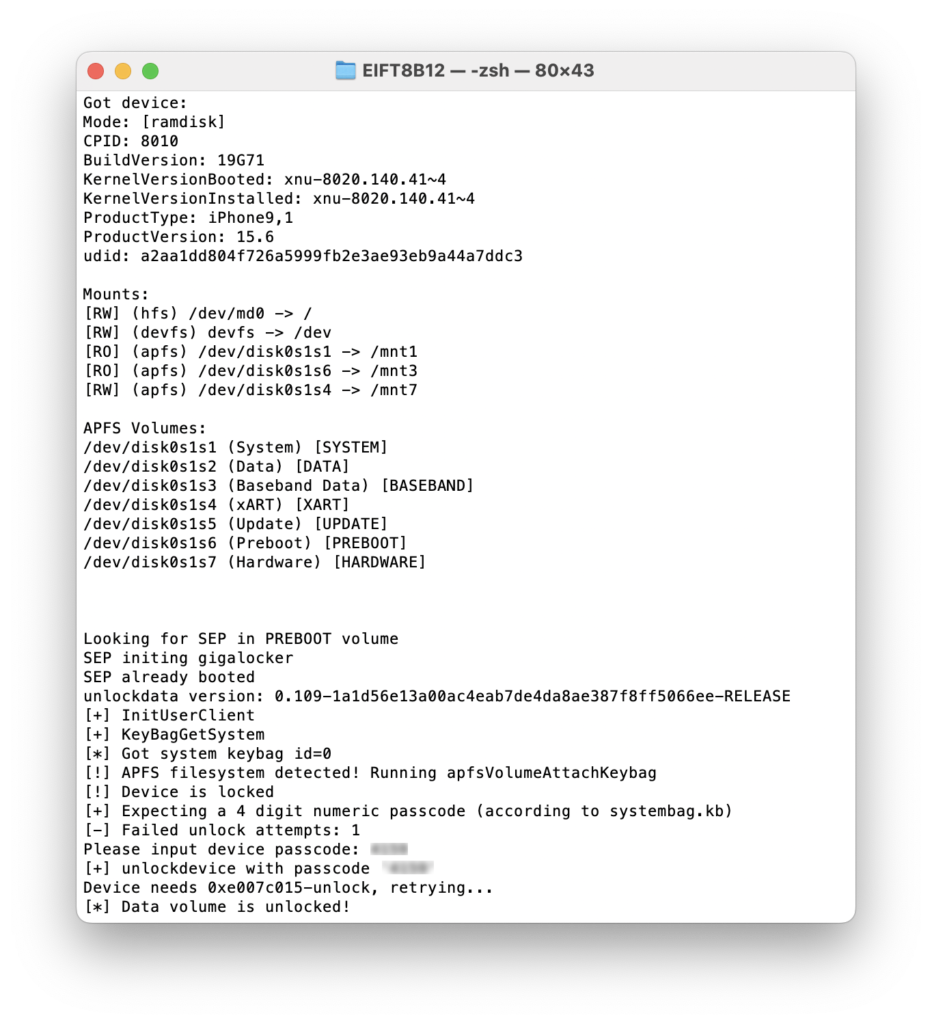 - Via Bootrom exploit (checkm8): Forensically sound file system & keychain acquisition for 76 Apple devices for all supported iOS versions. [1]